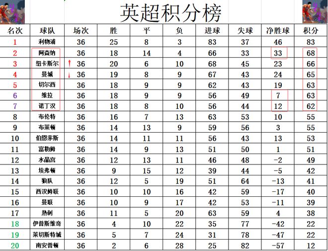 积分榜方面,随着阿森纳无力击败利物浦,争5最后是越来越热闹,黑马诺丁汉森林是彻底崩盘,他们今天还是无力赢球,已经被维拉1分优势超过跌出前6,现在维拉只落后阿森纳5分,因此阿森纳还是无力锁定前5,阿森纳或许都想不到,欧冠冠军他们都不想要,就要夺英超第2,结果现在第5都还无法提前锁定。纽卡斯尔赢球后超过曼城1分重回前3,掌握着争5主动,不过他们也只比切尔西和维拉多3分,最后2轮是悬念十足。